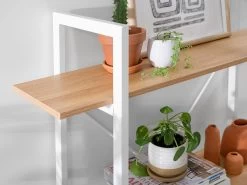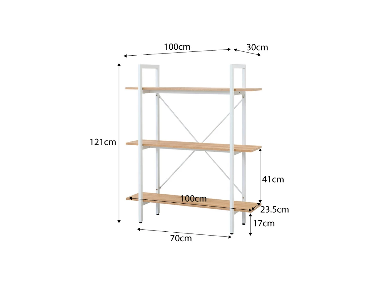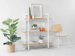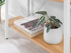 Introducing the Porto Small Bookcase – White, with all the same design and practicality as the Porto Bookcase but with smaller proportions. This stylish bookcase offers you plenty of space for your literary and décor needs. Perfect for the home or business, this shelving unit is solid on its metal frame but modern in its appearance with three light, wood-look grained shelves. With a stunning open design, this bookcase adds dimension and space to a room for a brighter, airy home.