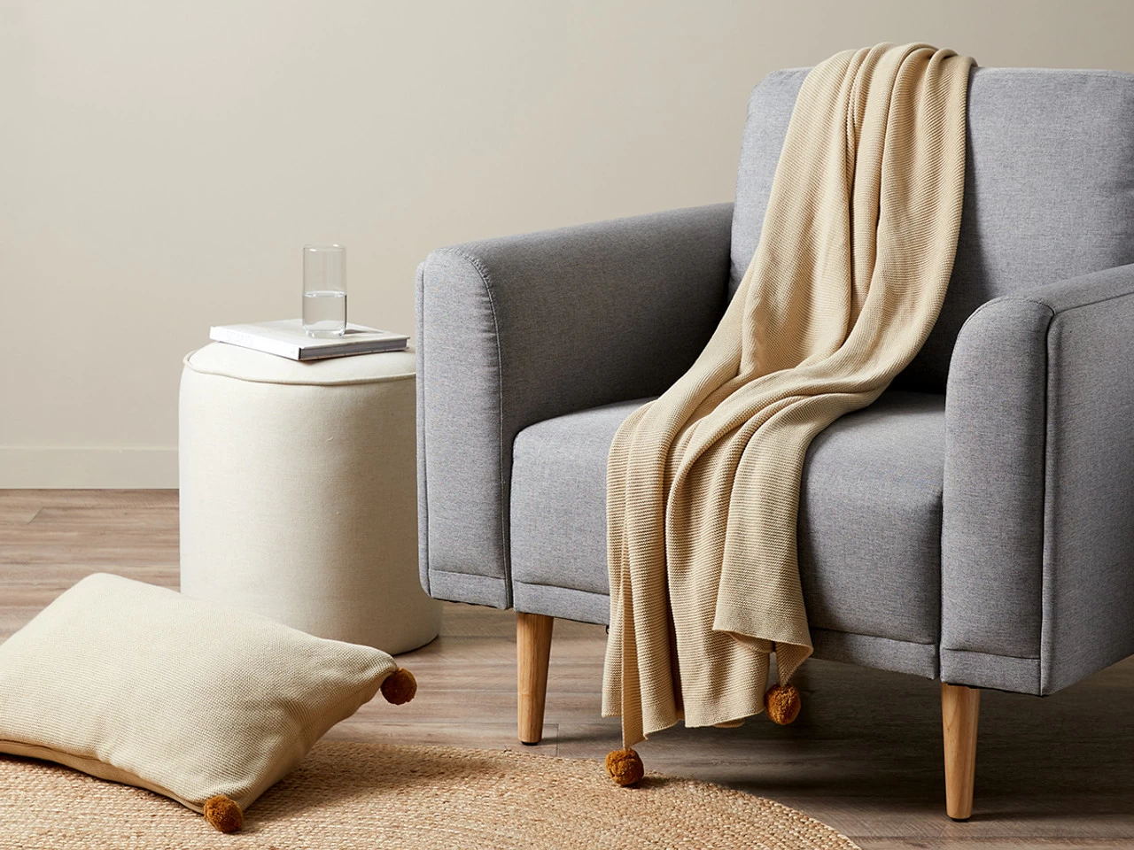 Enjoy the balance of warm, neutrals in your home décor with the Priya Pompom Knit Throw – Oatmeal/Mustard. A great way to add seasonal changes to bedroom and living spaces, this throw rug is handwoven from 100% cotton and features a tight, knitted weave for cuddly, cosy style. The oatmeal colourway is warm and neutral and pairs beautifully with the earthy, mustard pompoms on each corner. Generously sized at 125cm x 150cm, this throw blanket is perfect for styling on a bed, sofa or armchair and makes staying warm on misty mornings and chilly evenings easy for the whole family.