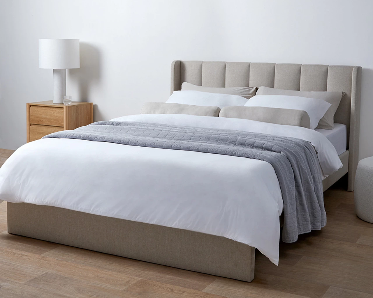 The Quinn Queen Bed – Natural will elevate your bedroom to a whole new level of chic. The statement headboard has a winged profile and vertical lines that’ll make your bedroom ceilings look higher and more spacious. And the best part? The headboard is padded, so you can lean back and rest your head and worries at the end of a long day. With warm undertones, the natural colourway will suit any decor or bedding you throw at it. Plus, with pine slats for support, you can be sure you’ll get a restful night’s sleep. Perfect for the primary or guest bedroom, this bed is the perfect blend of modern and traditional design for a stylish sleep sanctuary.