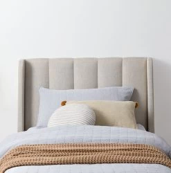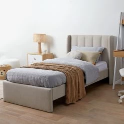 Give your child’s bedroom a stylish upgrade with the Quinn Single Bed – Natural. This bed features a statement winged headboard with vertical lines, adding a touch of sophistication and chic style that your child won’t outgrow easily.