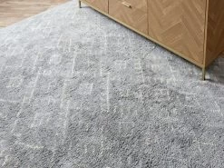 Our Romi Floor Rug – Extra Large – Grey is a tufted, extra-large floor rug perfect for large living spaces of your home. Crafted from quality materials, this rug features a soft and textural feel underfoot and will bring a layer of comfort to your floors. With a generous 200cm x 300cm size, this rug is ideal for the bedroom, dining room, lounge room and other living spaces in your home. We love the subtle tribal- inspired diamond pattern in blended shades of white and grey for a modern, elegant look.