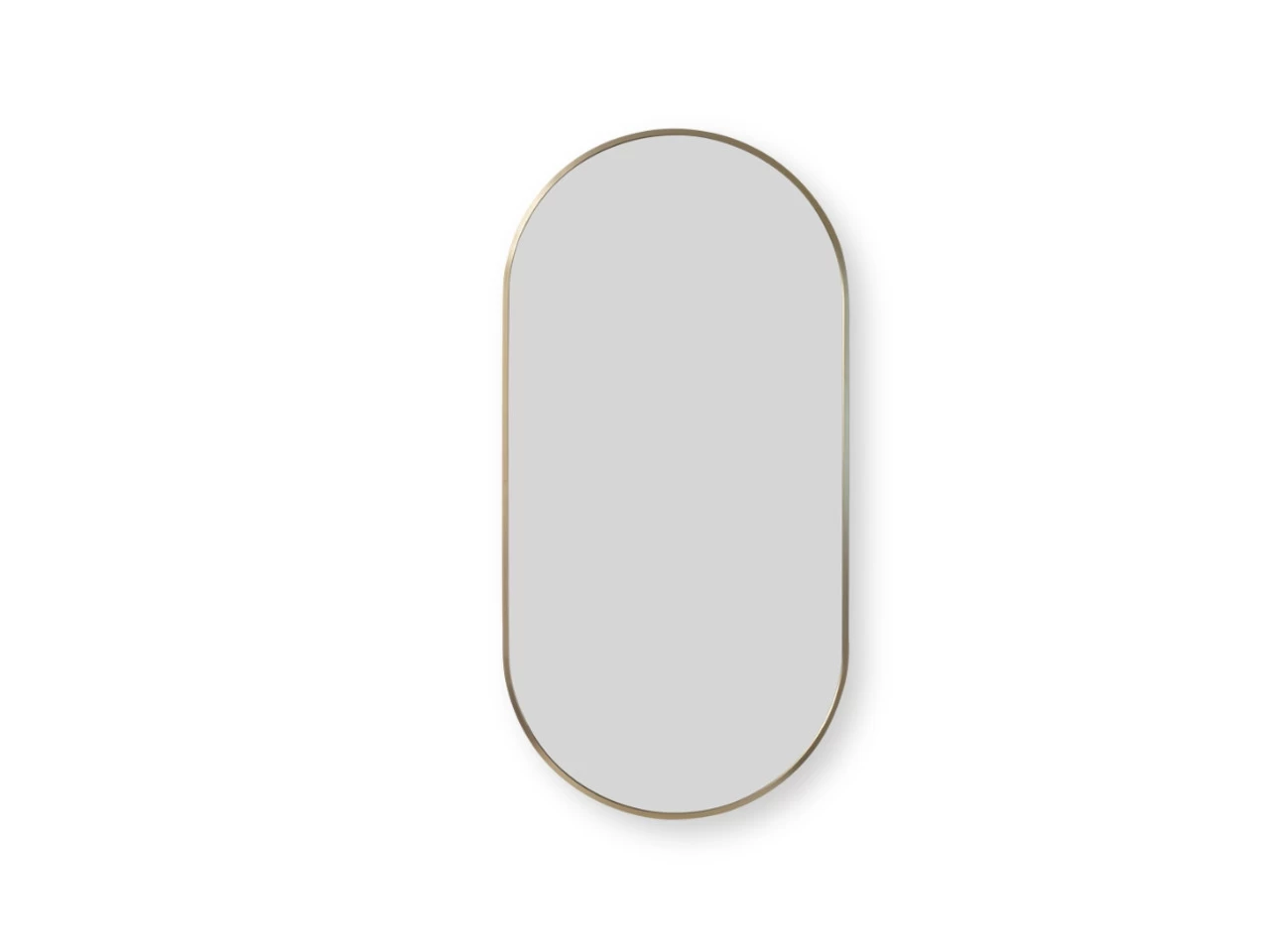 The Rony Metal Pill Shaped Mirror – Gold adds a touch of luxe, statement style to your walls. The curved, pill shape looks stunning hung like a piece of art and is a great way to make a room feel bigger and brighter. This pill shaped mirror is the ideal surface to give yourself the once-over before leaving the house or when getting ready in the morning. The gold metal frame gives it a luxurious quality and looks great styled above a warm, timber console table or buffet unit. Easy to hang, you’ll have the perfect decorative mirror to transform any wall.