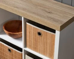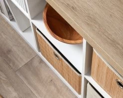 Inspired by relaxed, coastal styles, the Sadie Six Cube Unit is a stylish cube storage for any space in your home. It’s modern outline, light wood-look top and crisp white body makes this cube storage shelf feels bright and fresh. The perfect stylish addition to a living room, entryway, home office or kid’s bedroom. It’s not only gorgeously on-trend, but also very functional. The open cube design allows you to style and display décor or use with cube baskets for a tidy storage solution. And the best part? A statement surface for styling a lamp, vase, and other décor. Match back with the rest of the Sadie range for stunning style throughout your home.