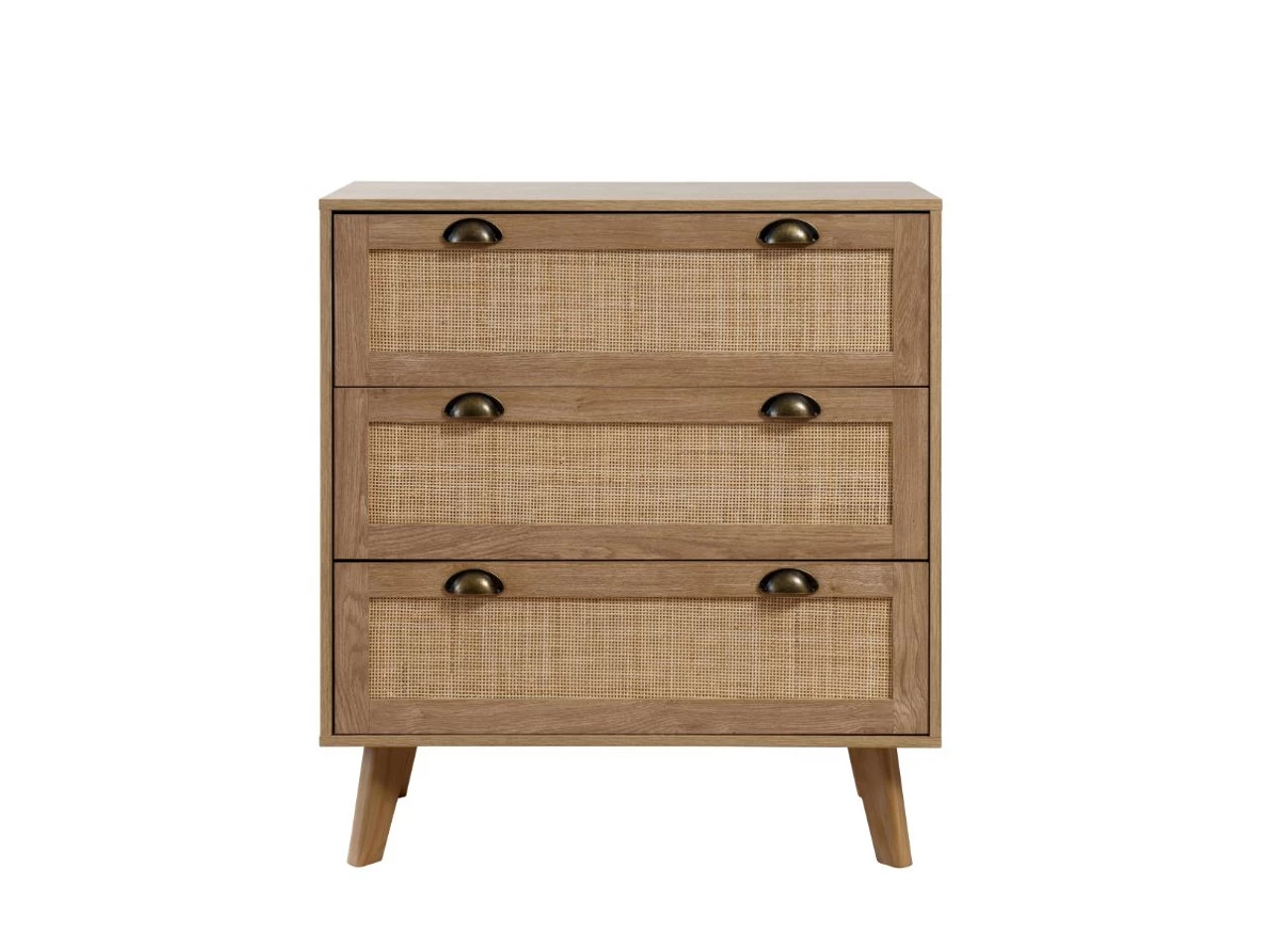 We love panelled rattan centre and metal handles paired with the natural wood-look colour, for a look that is chic and modern. The standout feature of this three door cabinet is the weaved rattan panels, providing a point of interest that draws the eyes in a room. Adore this signature look? Then be sure to check out the rest of the Savannah range. Add chic, rattan style to your bedroom with the Savannah Three Drawer.