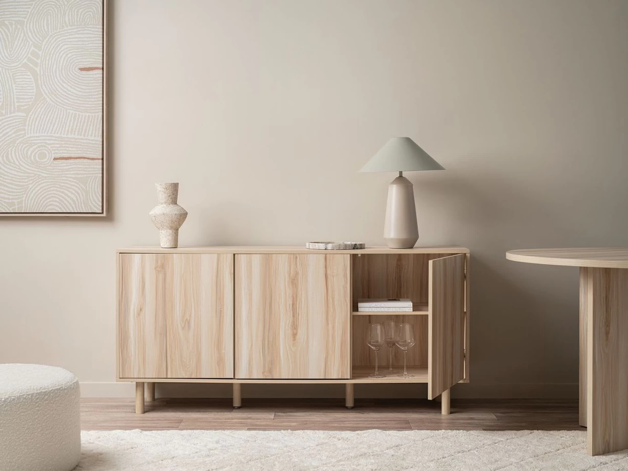 We love the durable, wood-look finish highlighted with natural and varying wood grains. This sideboard has warm, creamy tones for a beautiful timber buffet style to add to any space. If you love this look, be sure to check out the rest of the Sintra range for more home and bedroom furniture options. Transform your dining room and home storage with the Sintra Buffet.