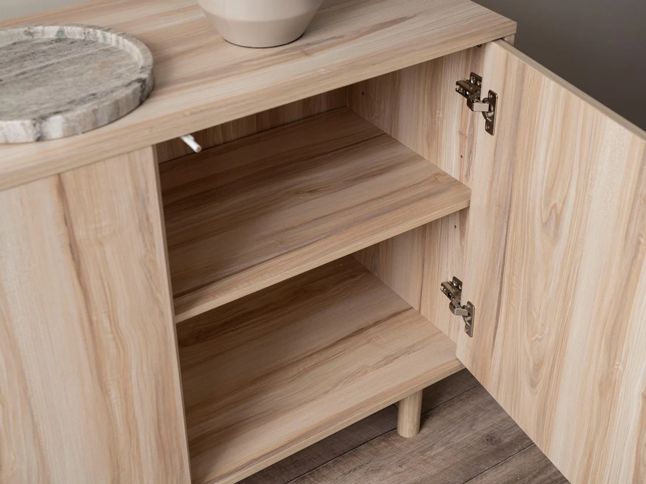 Use the surface to serve food and drinks during Christmas, Easter, and other special occasions. When not entertaining, create a beautiful look with décor, vases, artworks, and plants. Featuring a handless, push opening design, you’ll love the clean, minimal style this gives a room.