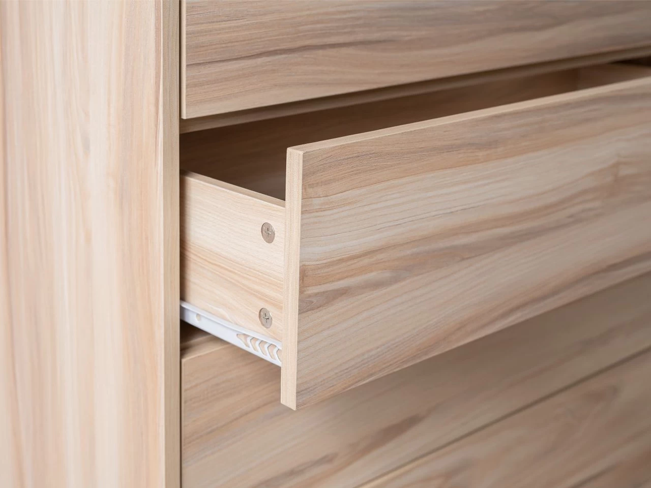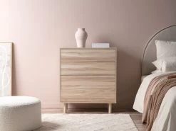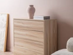 Featuring a handleless, push opening design, you’ll love the clean, minimal style this gives a room. Aside from the push opening mechanism, each drawer has sliding, metal runners ensuring it opens smoothly every time. With a distinct modern shape, this wooden chest of drawers won’t go out of style. Add a lamp on top for a functional surface or simply style with décor for a chic look.