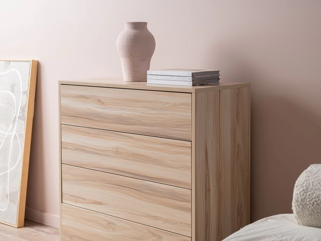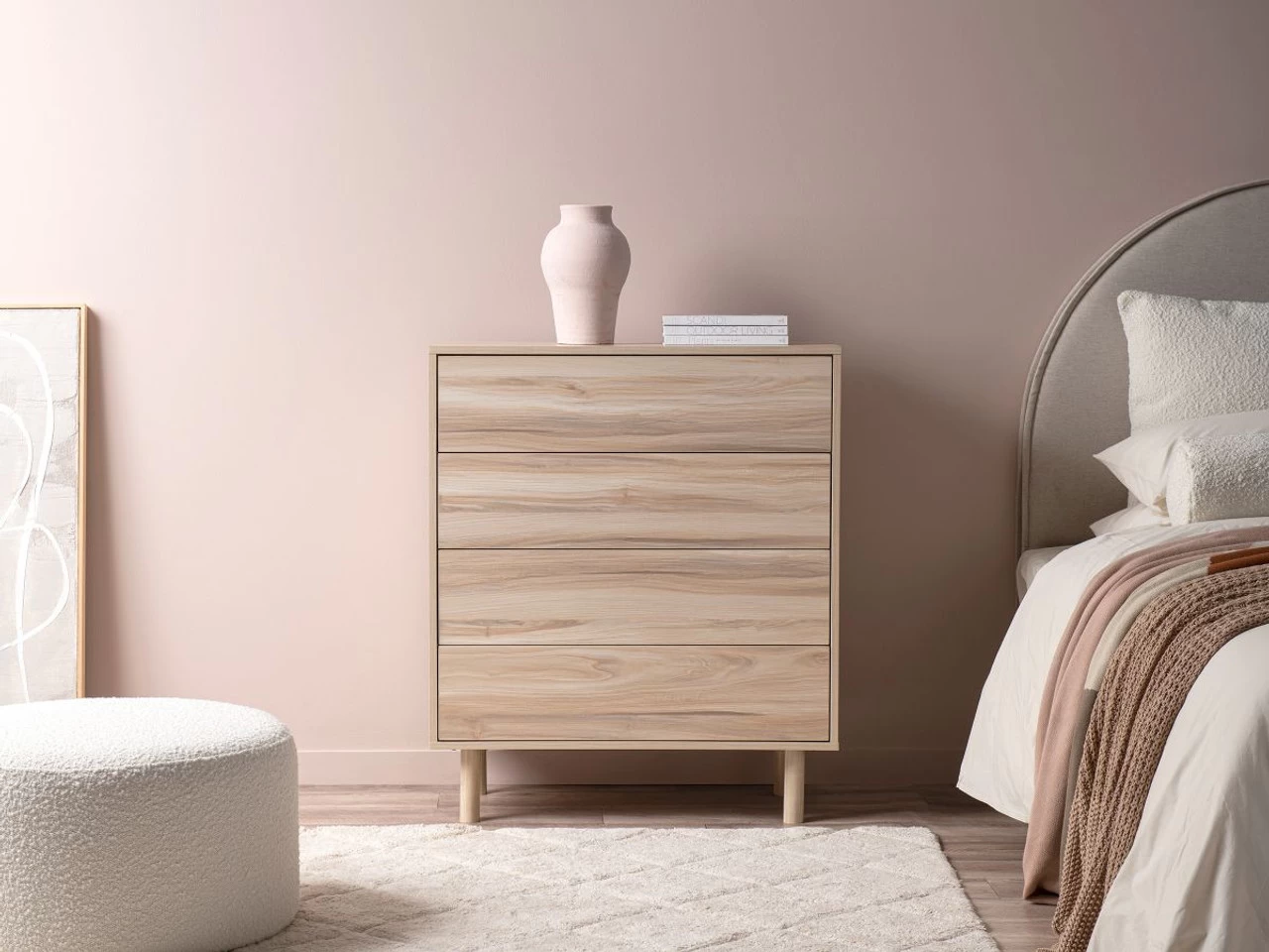 We love the durable, wood-look finish highlighted with natural and varying wood grains. This unit has warm, creamy tones for a beautiful timber dresser style to add to any space. If you love this look, be sure to check out the rest of the Sintra range for more home and bedroom furniture options. Add stylish, drawer storage to any bedroom with the Sintra Four Drawer.