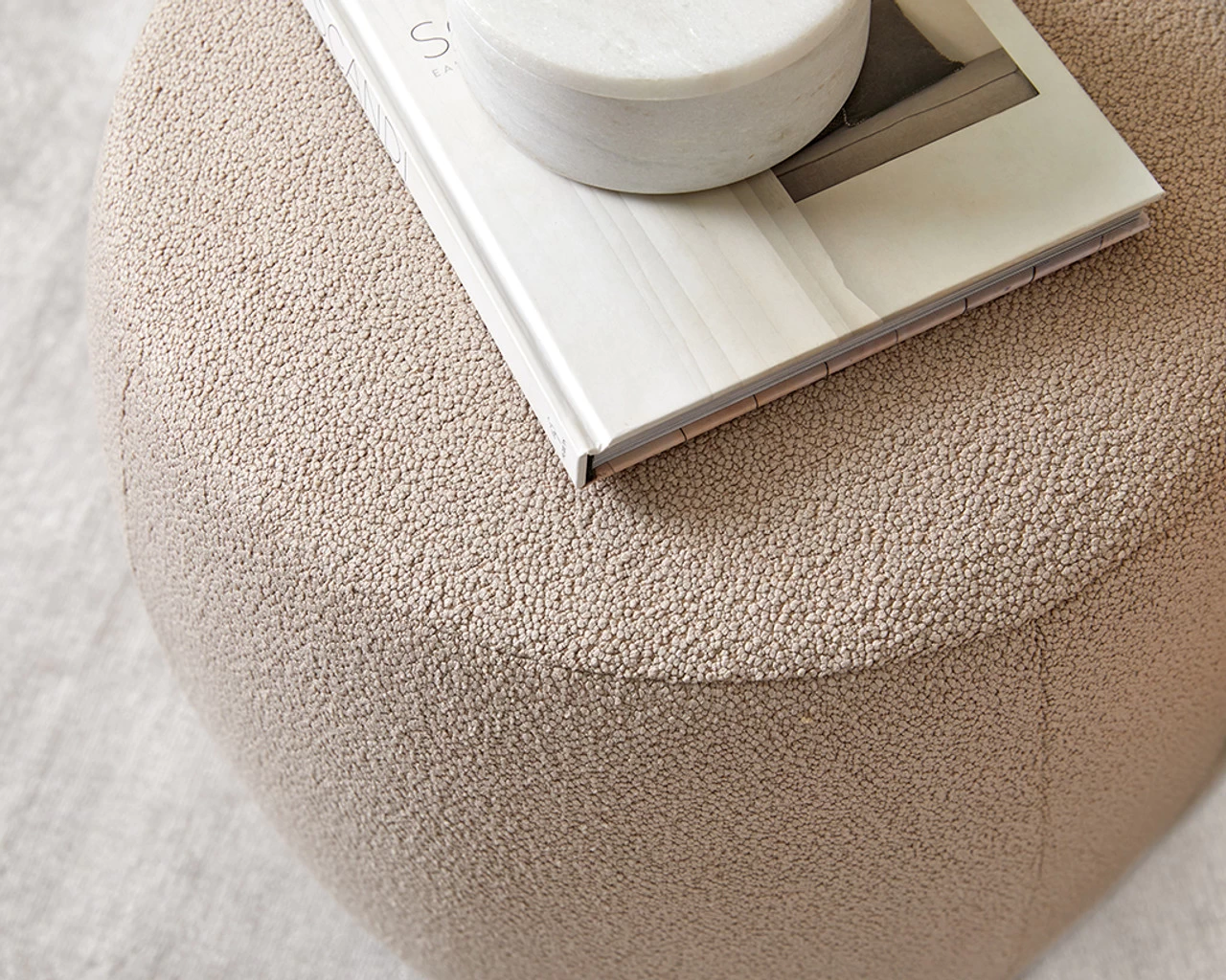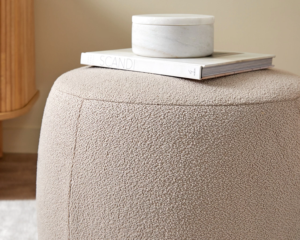 The Smooth Boucle Ottoman Small – Hazelnut adds warm, cosy style to your home. With a luxurious smooth boucle fabric in a stunning hazelnut colourway for warm earthy appeal. Adding a touch of texture to any living space, this versatile ottoman creates an inviting atmosphere that beckons you to sink in and relax.