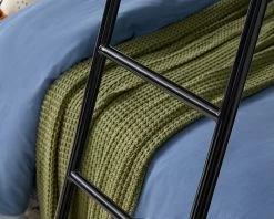 The metal ladder provides access to the top bunk, which also includes a set of handles for a safe and easy climb.