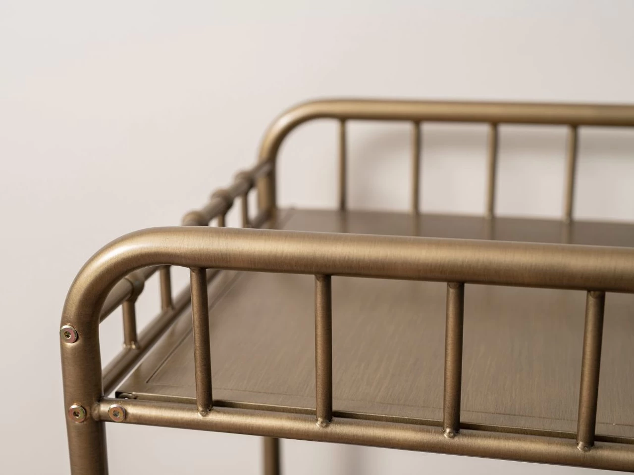 The Sonata Change Table – Bronze is a brushed bronze change table sure to add an element of opulence to your nursery. Featuring rounded corners and metal beading, this metal change table gives a nod to vintage design. Made from powder coated steel, this changing station is strong and durable and offers all the safety you would expect from a modern piece of nursery furniture.