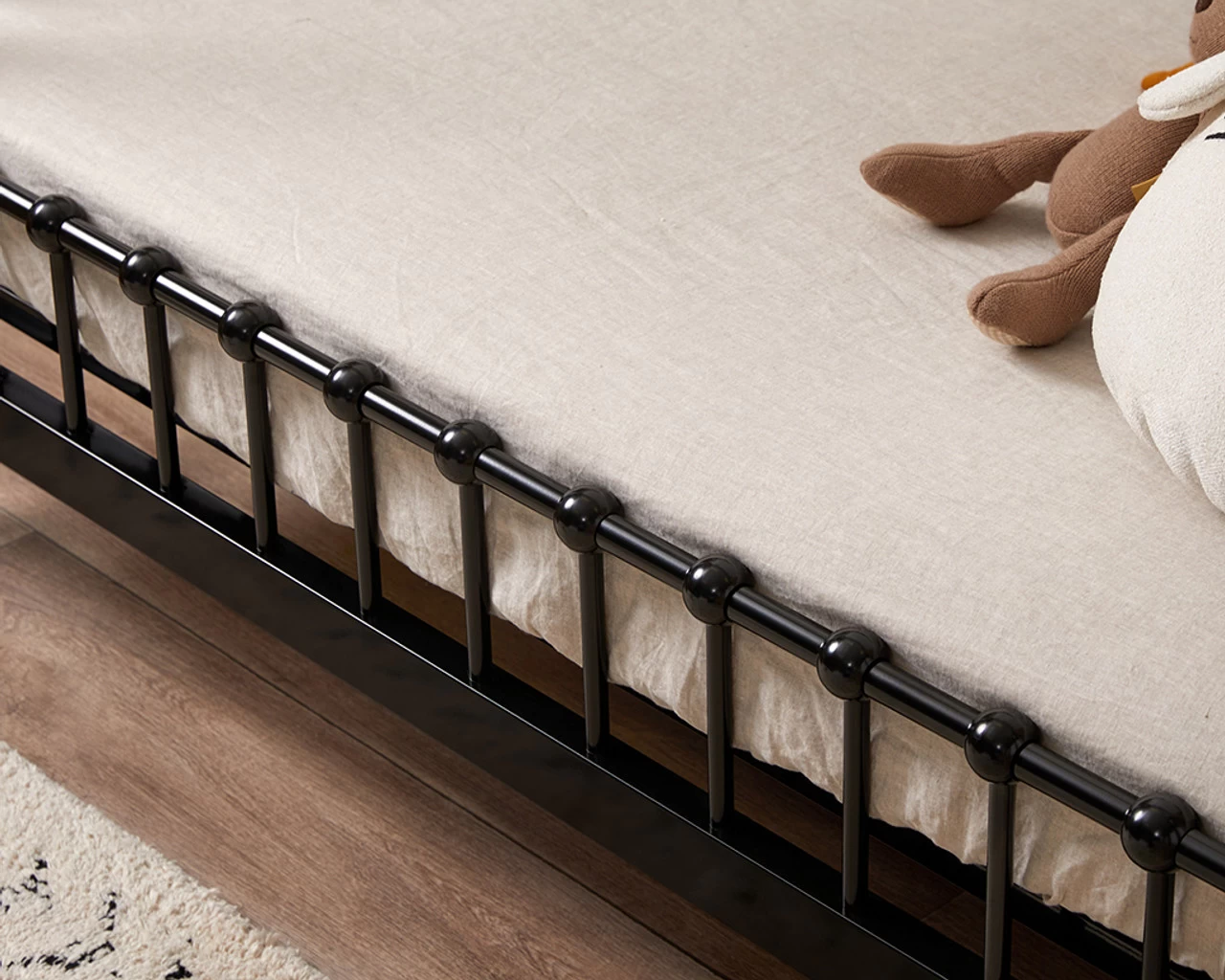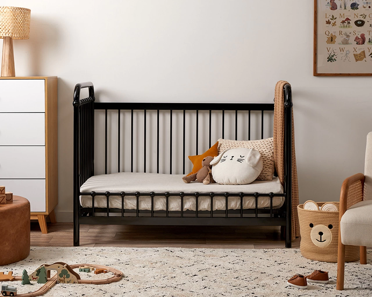 Give your cot a second life with the Sonata Cot Toddler Bed Conversion – Black. Ideal for when your child has outgrown their cot, but isn’t quite ready for a big kid’s bed, simply use this black metal panel to replace a side of your Sonata Cot and give your child the perfect transition bed between cot and big bed.