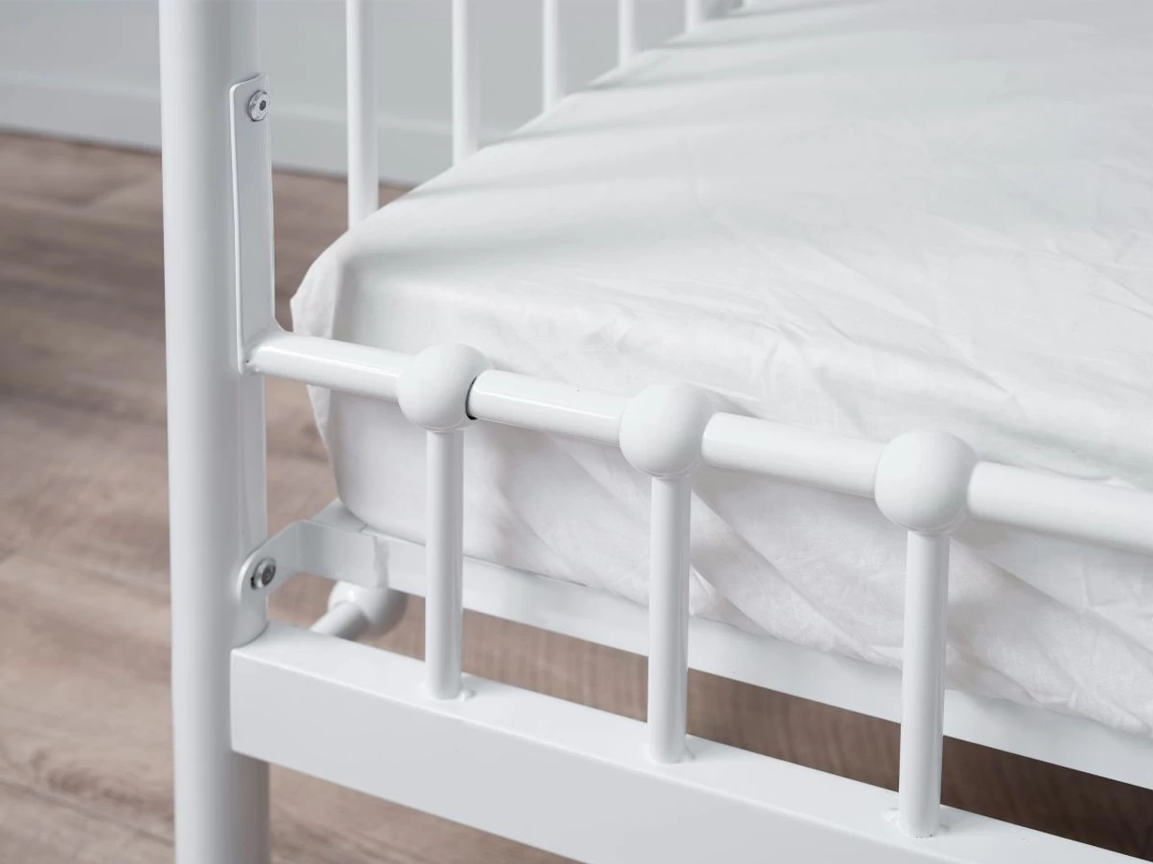 Featuring the signature vintage-inspired style this cot conversion panel has a crisp white colourway that will easily suits any décor theme (and perfectly matches our Sonata Cot – White). The white metal frame is great for adding light and brightness to a nursery space. Convert your cot to a toddler bed with our Sonata Cot Toddler Bed Conversion.