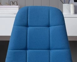Create a contemporary workspace with the Stevie Desk Chair – Dark Blue. Featuring a tufted design, it adds a stylish sophistication to your home office or study nook. The dark blue colourway is contemporary and appealing and offers a pop of colour in any office space or bedroom. Perfect for children and young adults, this modern desk chair has a padded seat and backrest for comfort and support. It has strong metal legs, smooth, well-designed wheels, and a gas lift to easily adjust the height to suit you. Perfect if you’re working from home or for the kids to study.