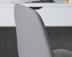 Inspire your workspace with the modern Stevie Desk Chair – Grey. Featuring a tufted design, it adds a stylish sophistication to your home office or study nook. The grey colourway is wonderfully contemporary and is a great neutral option for any office space or bedroom. Perfect for children and young adults, this modern desk chair has a padded seat and backrest for comfort and support. It has strong metal legs, smooth, well-designed wheels, and a gas lift to easily adjust the height to suit you. Perfect if you’re working from home or for the kids to study.