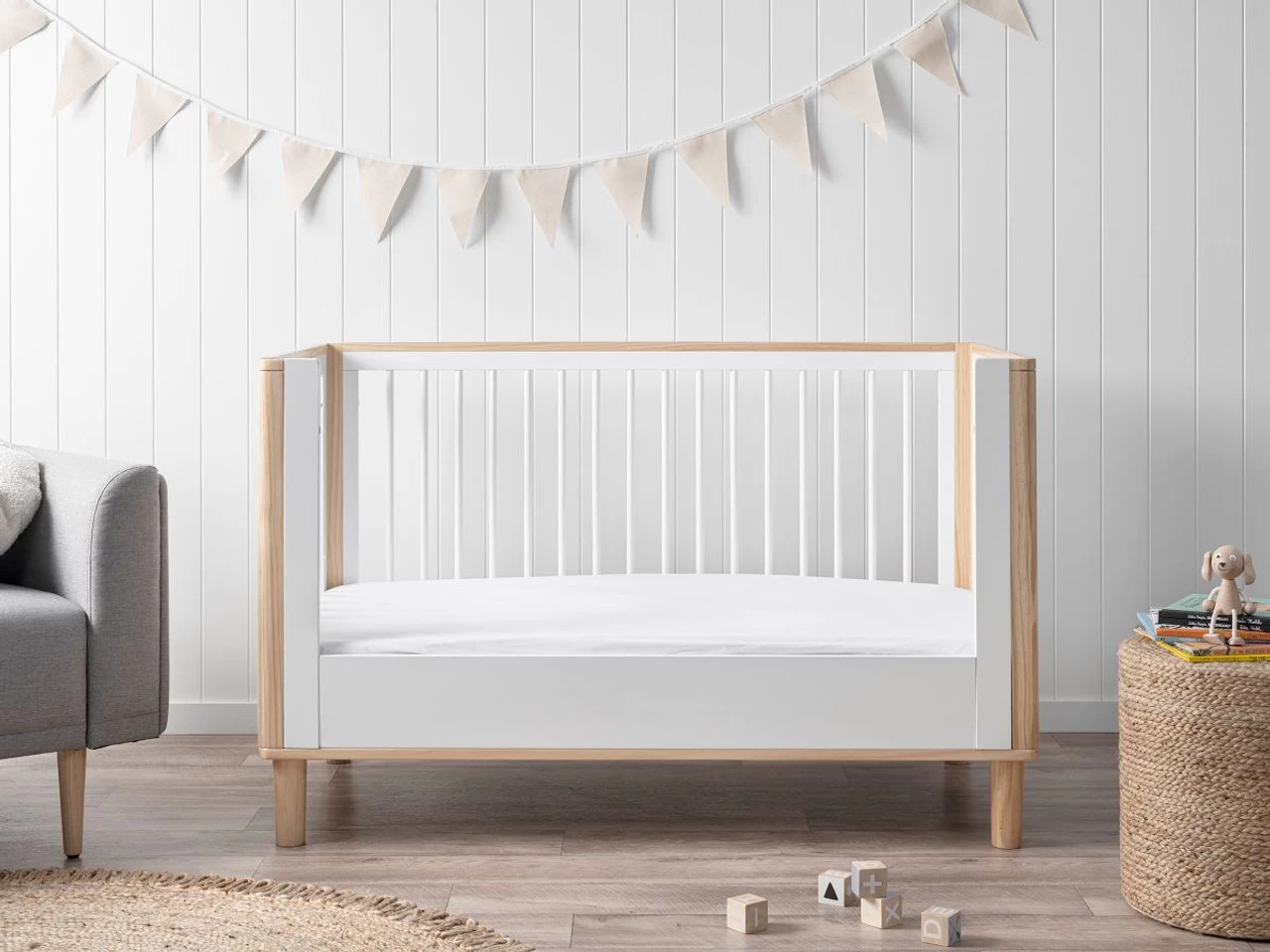 Maintaining the safety of your original cot, this toddler side panel has the same study, durable construction. The quality finish is also perfectly design to match the white and natural style of the Tahoe cot and keeps your child’s bedroom look fresh and modern. Help your little person transition from the cot to a big-kid bed with our Tahoe Cot Toddler Bed Conversion.