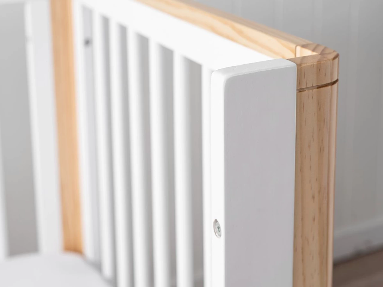 The Tahoe Cot Toddler Bed Conversion – White is a toddler bed panel to add to the Tahoe Cot. Ideal to help transition your child from cot to big kids bed, a toddler bed lets you get even more use out of your child’s beloved cot. With a simple design, install by removing one side panel of your Tahoe Cot and attached this toddler side in its place. Featuring the same finish to suit the white and natural style of the Tahoe Cot, choose the Tahoe Cot Toddler Bed Conversion today!