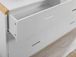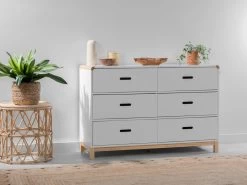 Add generous storage to your home with the Tahoe Six Drawer. We can all benefit from extra drawer space and this large chest of drawers gives you six to choose from. You’re sure to be able to find a space for anything, while keeping rooms tidy and clutter-free. Suitable for the bedroom, nursery or living room, this dresser gives you the ease to access your items as often as you want.Â