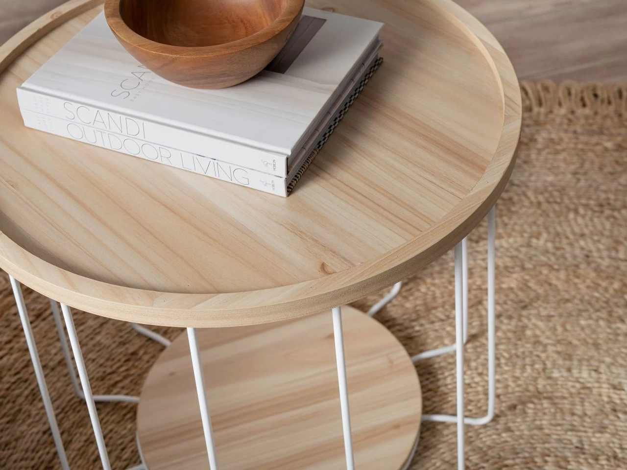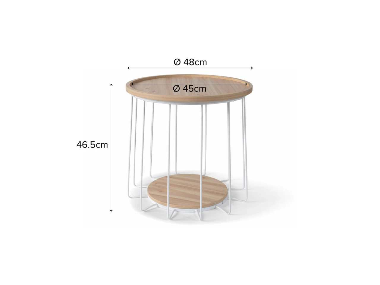 Featuring a circular, wooden tray top, this side table is gorgeously crafted to look stylish now and for many years to come. The bright white metal frame is fresh and modern, ensuring this side table will easily brighten a space. With a minimal raised lip around the edge, this gives the side table a sense of depth and helps keeps items securely displayed.