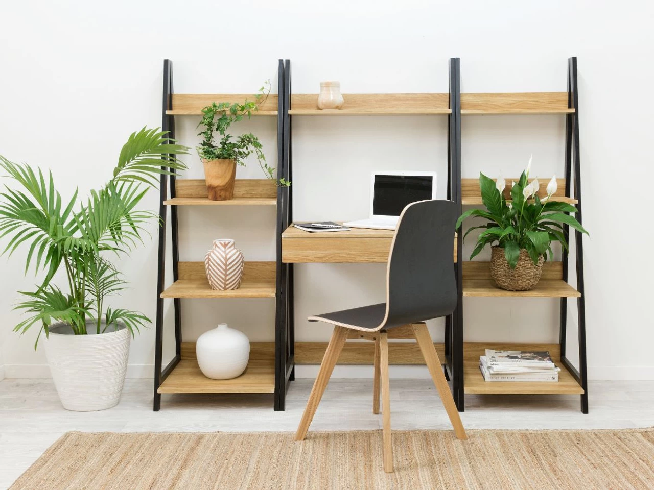 The Urban Ladder Shelf – Black provides essential storage to fit a variety of spaces. Competitively priced and stylishly designed, the Urban Ladder Shelf is available with a black frame. They provide simple yet effective storage for a home, office or workplace. Made to work in unison with the Urban Desk, this ladder shelf can be paired alongside each other and the desk to customise a workspace of your design. Add storage for folders and stationary or simply create an effective layout to style with plants, prints and decor.
