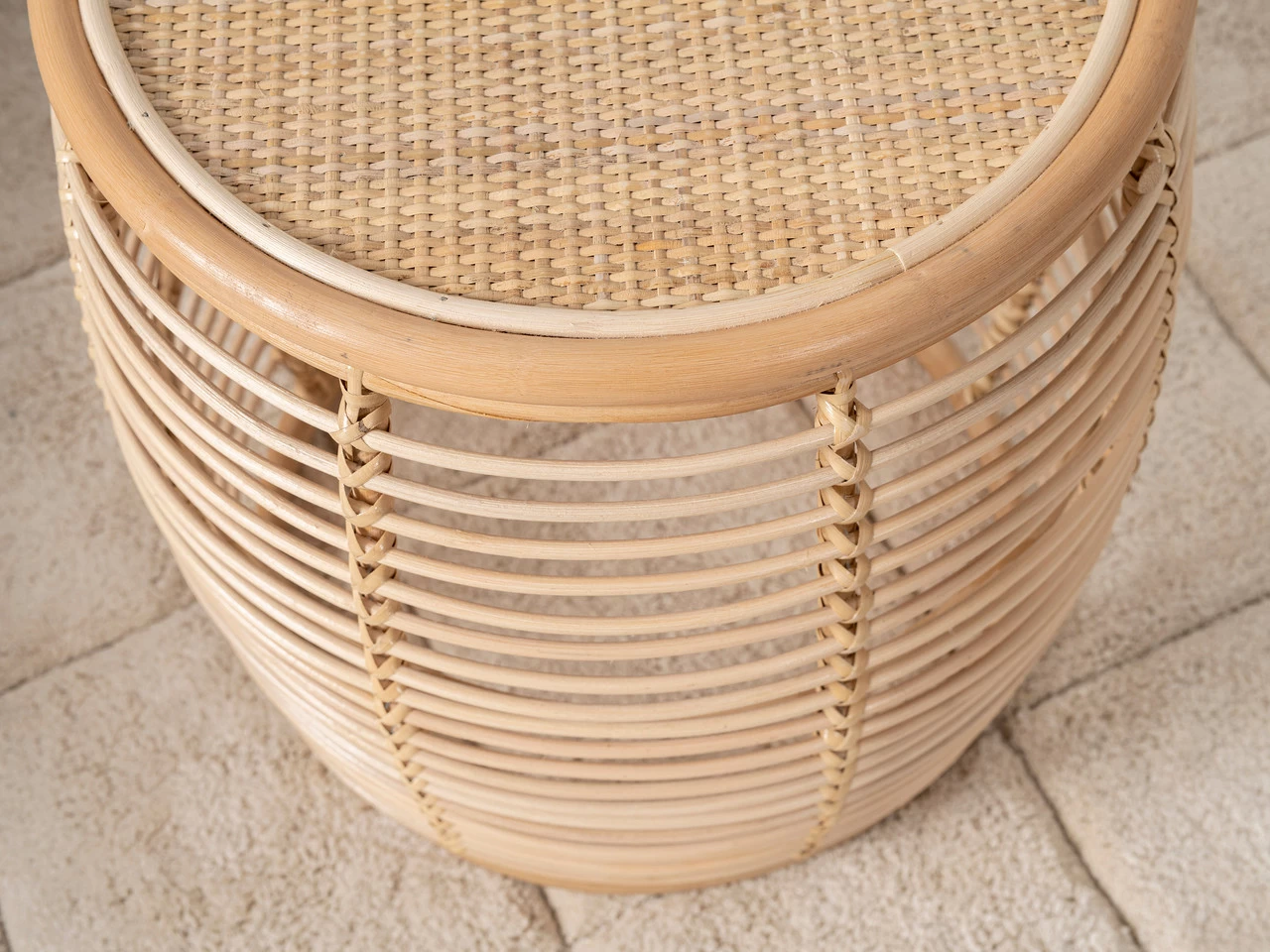 The Venice Rattan Drum Side Table adds coastal style and superb function beside a couch, armchair, bed and more. The drum-shaped design with an open, weaved construction creates an interesting feature in a room, while still ensuring a space still feels airy and spacious.