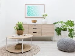 You’re sure to love the Vigo Coffee Table – White. This coffee table has all the charm and style as the rest of the Vigo Range but in a circular coffee table design. With the same wood-look paper veneer finish paired against white powder-coated metal legs, matching styles is super easy. This coffee table has wide, dual surfaces providing plenty of opportunity for storage and styling and is everything you need in a coffee table and more.