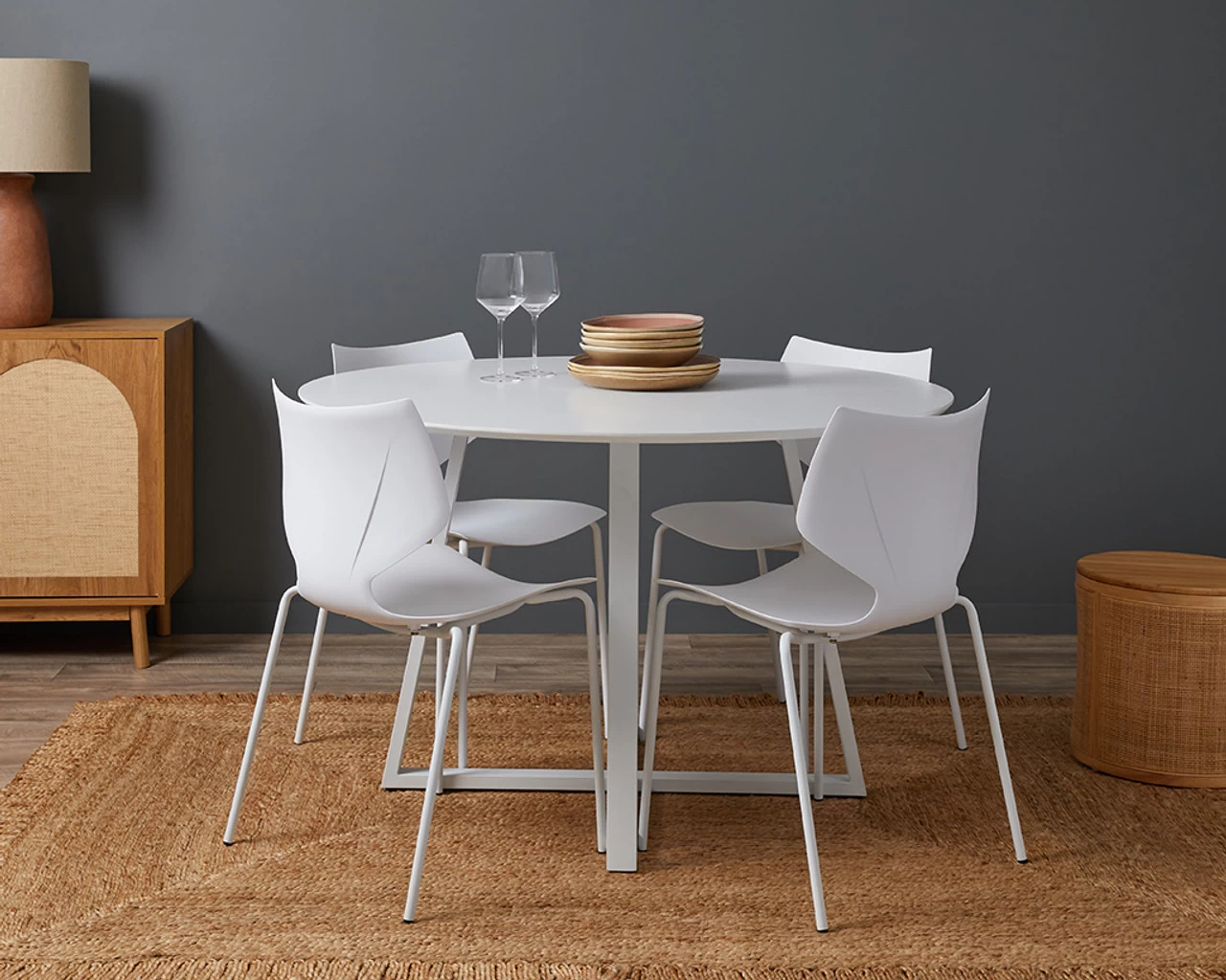 Gather round and share a meal with the Zander 4 Seater Round Dining Table โ White. With plenty of space to seat up to four comfortably, this is a good-sized dining table to suit a range of homes and spaces. From smaller dining spaces in an apartment, to spacious breakfast areas in a suburban home, this dining table will elevate your eating areas.