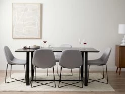 The Zander 6 Seater Dining Table – Black is a spacious dining table that’s practical for everyday use, as well as dinner parties and special occasions. Seating up to six comfortably, you won’t have any issues fitting friends and family around to share a meal. Create a dedicated dining space and pair with a statement rug, and dining chairs of your choice.