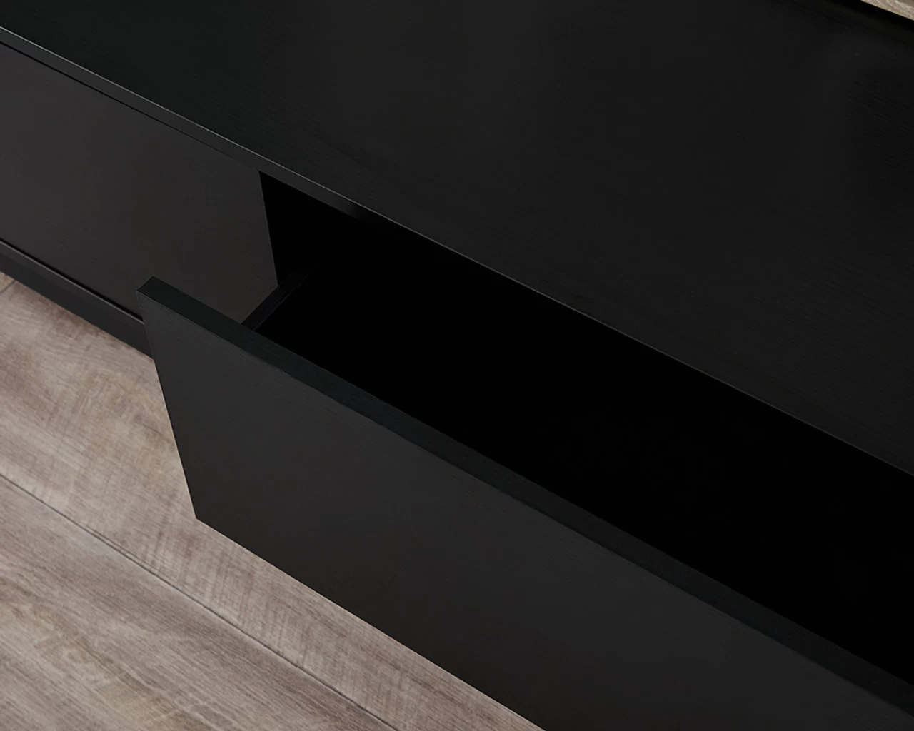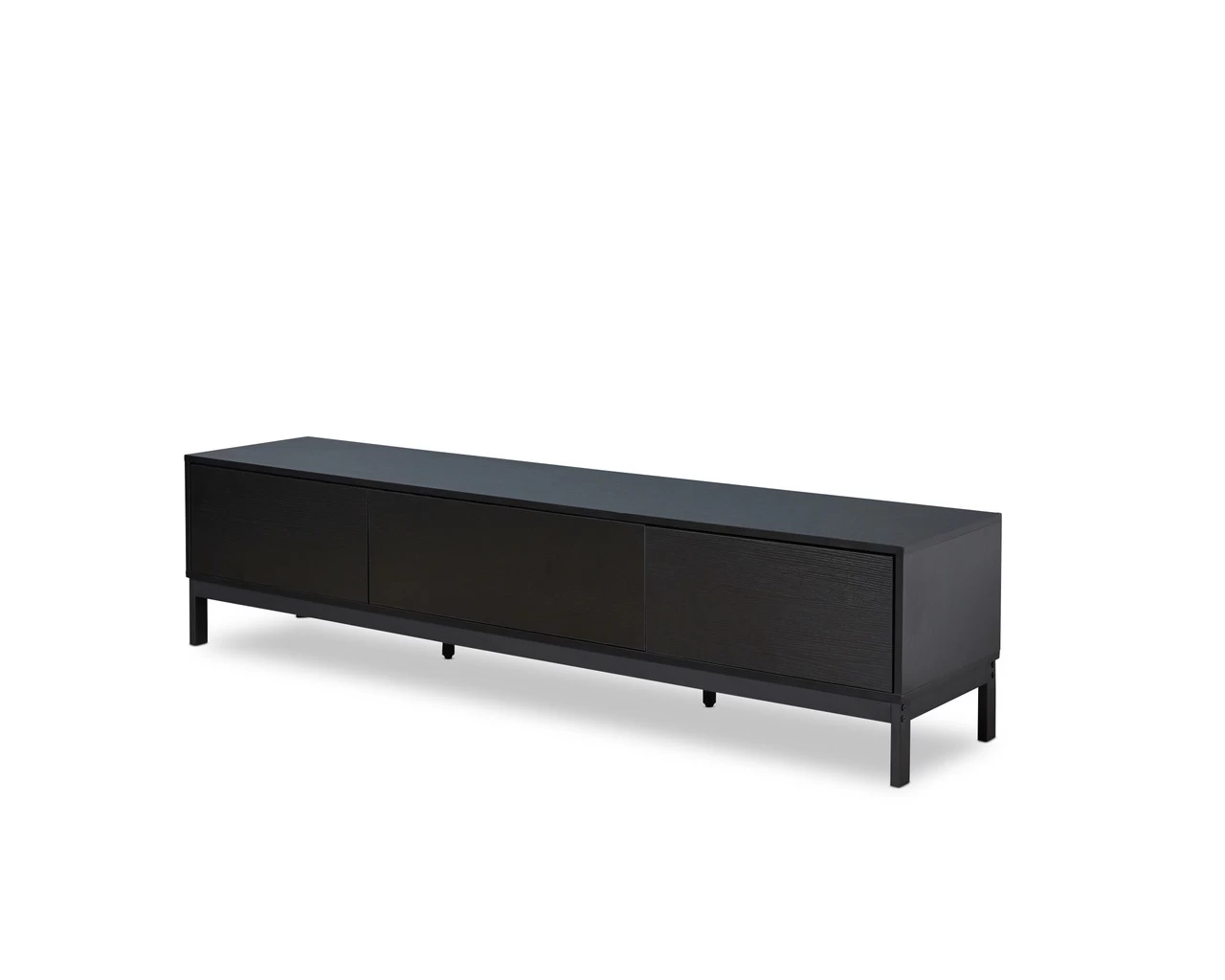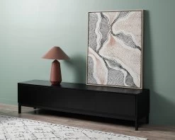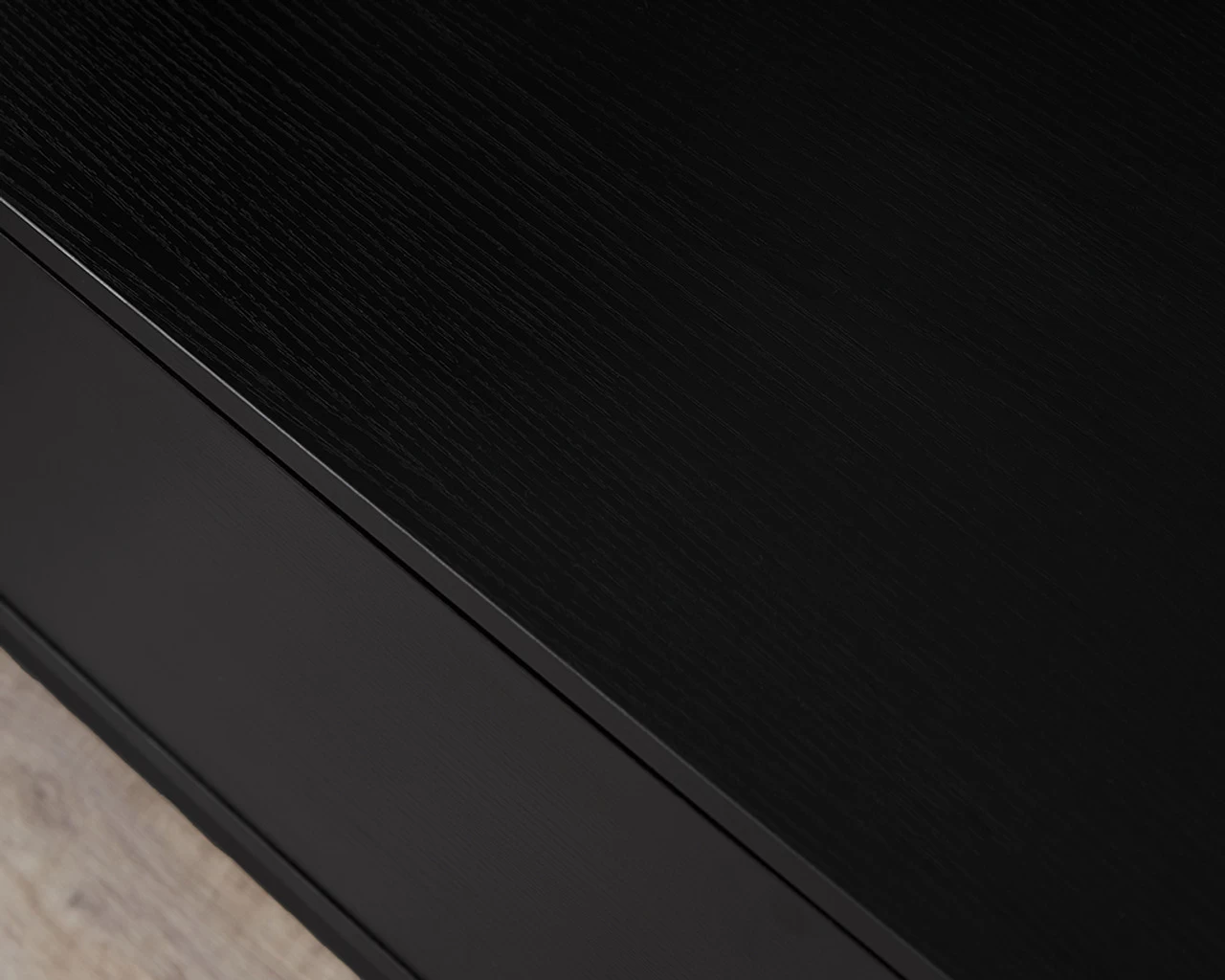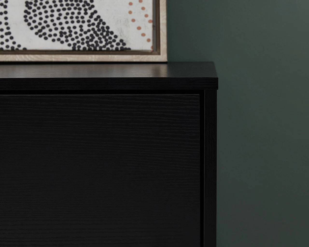 The Zander Entertainment Unit – Black is the ideal TV unit for a sophisticated and modern home style. It’s sleek outline, woodgrain finish and black colourway adds a bold statement in a lounge room or media room. With plenty of space to style décor, you’ll love the look of this entertainment unit below a wall mounted television. Not only does it look great, it’s also brilliantly functional. With push to open doors on the side cupboards and a hinged downward-opening centre cupboard, it has versatile storage options for soundbars and devices. Match back with the rest of the Zander range for a chic look throughout your home.