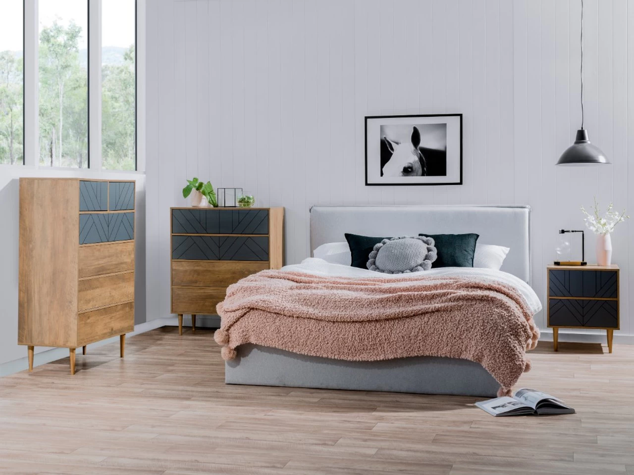 Inspired by the sleek, decorative style of the Art Deco period but with a modern sensibility, the Zara Tallboy is bound to transform any Australian bedroom. Big on storage and even bigger on chic style, you’ll add magazine-worthy elegance to any bedroom. With this tallboy you’ll be able to maximise the storage space in your home and keep everything tidy and out of sight. The mix of timber wood-look and patterned, grey drawer fronts adds vibrant style into any tired interior. Perfect for the nursery, bedroom or even in a living space, this is a signature piece that’ll have everyone asking “Where did you get that?”.