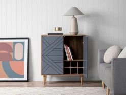 Evocatively stylish, the Zara Two Door Cabinet is a storage cupboard you’ll love in your home. Featuring two spacious cupboards on one side and an in-built bottle rack and hanging wine glass rails on the other, this all-purpose storage unit offers storage for a variety of home essentials. Perfect for the dining room, living room or office, this storage cabinet looks stunning in any space and keeps rooms tidy and clutter-free. We love the pairing of dark wood and patterned grey doors for an art deco-inspired design that looks chic and sophisticated in any setting.